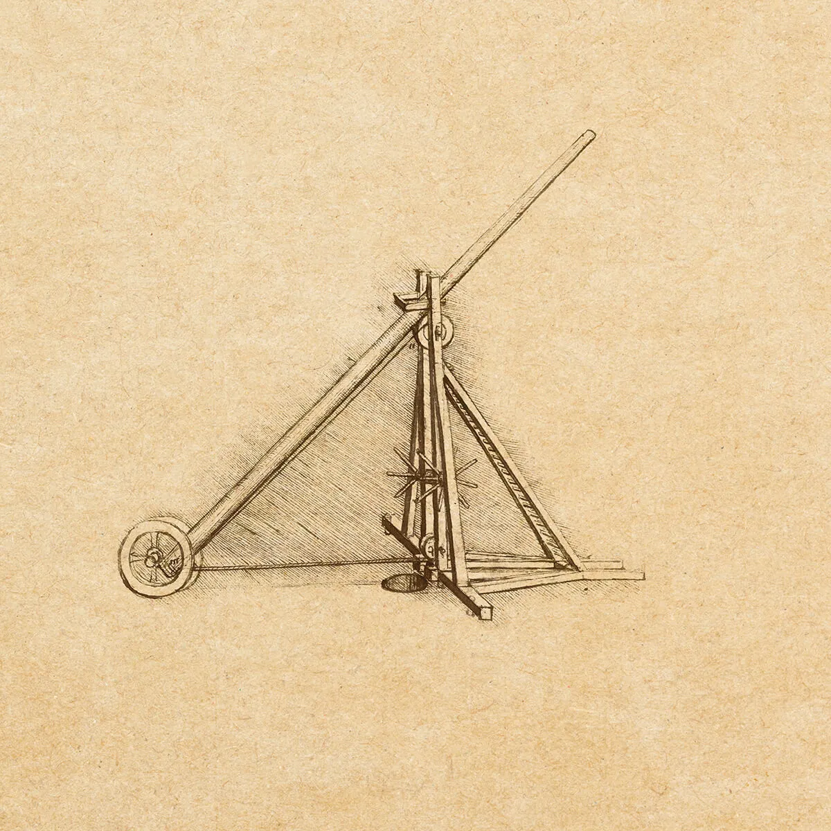 Es tracta d'una versió simple d'una màquina per alçar pilars i puntals. Leonardo es basà en dissenys més antics de l'enginyer italià Francesco Martini, entre d'altres.