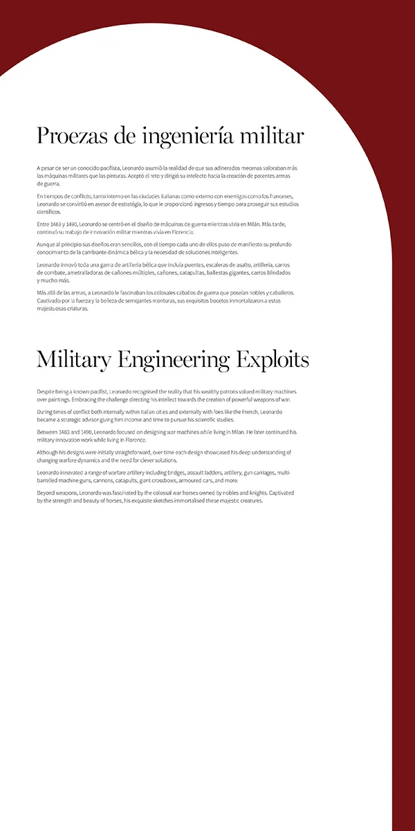 Leonardo també va ser un estrateg militar i va inventar el predecessor del tanc militar, una ballesta gegant, una metralladora multidireccional, la bala, els ponts militars i molt més.
